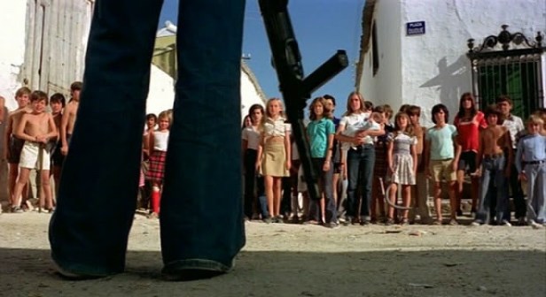 Purposefully paced, dealing out its shocks in reluctant glimpses, Ibanez’s film requires the viewer to contemplate its titular question along with Tom and Evelyn—Who can kill a child, and at what point does such an act become excusable? From the 10-minute Mondo film opening (a type of exploitation documentary which explored taboo subjects) that presents the thesis that children around the world are disproportionally subject to the atrocities committed by adults and nations, and therefore are long overdue for their revenge, to the final gunfight, Who Can Kill a Child? is a grim affair. This is not a fun exploitation film—It wants you to consider, to roll its questions around in your mind until you’ve come up with a reason for our actions, and then it wants to shatter that reasoning. Like the children in the film, it wants to hurt you.